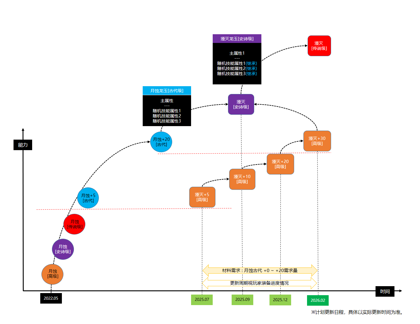 我们计划从现在开始到2026年上半年期间,逐步更新扩展。虽然月蚀与湮灭龙玉所需的强化材料不同,但在整体刷图获取所需投入会保持大致相似。